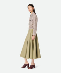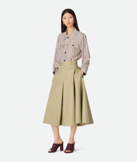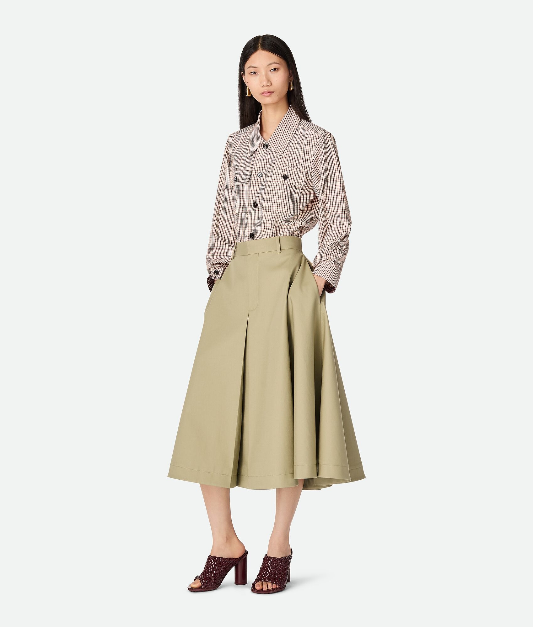 A-line skirt in compact cotton twill. Product Details - Compact cotton twill A-line skirt - Zip, hook, and button closure - Material: 100% cotton - Color: Travertine - Made in: Italy - Product code: 812334V4Y203008