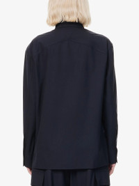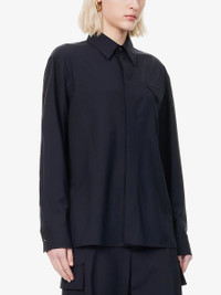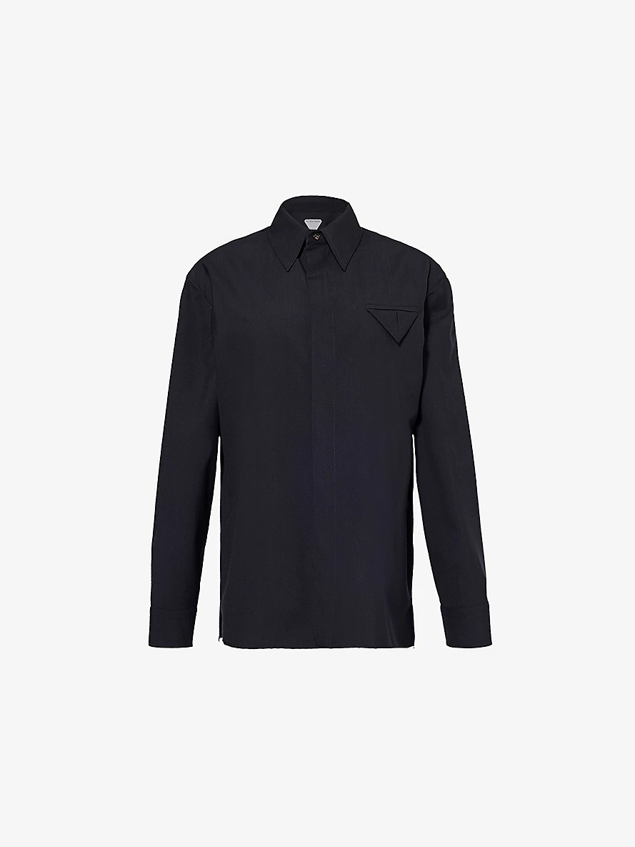 PRODUCT DETAILS - Bottega Veneta fine-wool shirt - 100% wool - Concealed button fastenings at front - Straight-point collar - Regular fit, collar, long sleeves, buttoned cuffs, pointed chest welt pocket, side slits - Dry clean - Made in Italy - True to size - Size UK 8: length 29in / 74cm - Model is 5ft 10in/1.78m and wears a size UK 8 - Lightweight, non-stretch Ref: R04382451