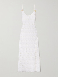 Embellished open-knit cotton and silk-blend midi dress Off-white