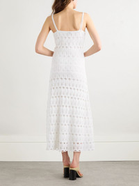 Bottega Veneta's dress is intricately knitted from cotton and silk-blend to look like fish - the playful motif nods to the label's signature 'Sardine' styles. It's fully lined to provide coverage and has sculptural gold-tone embellishments decorating the straps. Size & Fit - Fits true to size, take your normal size - Designed for a slim fit - Designed with a slim-fitting slip - Lightweight, open knit - Model is 180cm/ 5'11" and is wearing a size Small Model measurements: - Bust: 81cm/ 32" - Waist: 63cm/ 25” - Hip: 90cm/ 35.5” Details & Care - White cotton and silk-blend - Slips on - 84% cotton, 16% silk - Dry clean