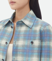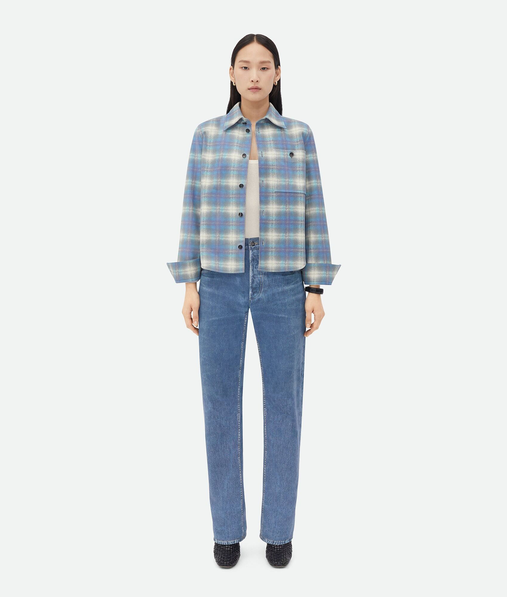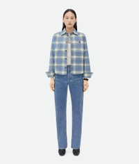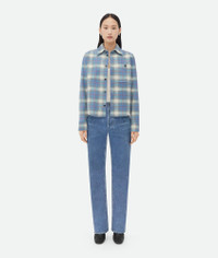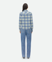 Printed leather shirt. Product details • Printed leather shirt • Flannel check effect • Button closure • Unlined • Regular fit Material: 100% Lambskin • Color: Multi/Light Blue Made in: Italy Size & fit • Model is 177 cm | 5'9" and is wearing a Bottega Veneta size 38
