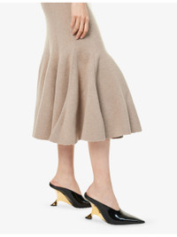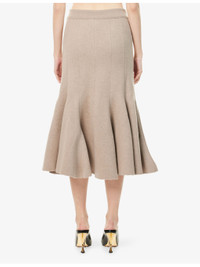 PRODUCT DETAILS - Bottega Veneta cashmere-blend midi skirt - 84% cashmere, 16% polyamide - Slim fit, high-waist, elasticated waistband, darts at front and back, all-over knitted, flared hem - Dry clean - Made in Italy - True to size - Size small: length 31in / 79cm - Model is 5ft 10in/1.78m and wears a size small - Midweight, stretchy Ref: R04508470