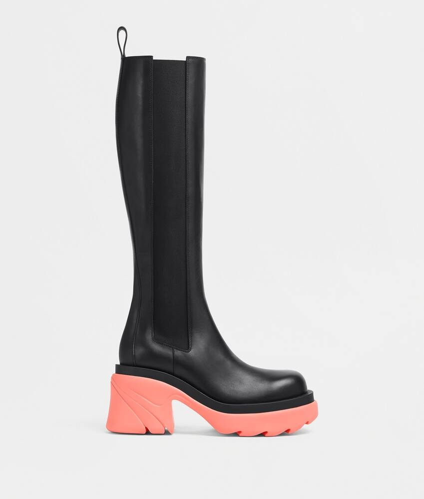 • Vegetable-tanned leather high Chelsea boots Material: 100% Calfskin • Lining: Calfskin • Color: Black/Flamingo • Rubber outsole • Heel: 9.5 cm | 3.7" • Platform: 4.5 cm | 1.8" Made in: italy