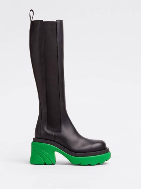 • Vegetable-tanned leather high Chelsea boots Material: 100% Calfskin • Lining: Calfskin • Color: Black/Grass • Rubber outsole • Heel: 9.5 cm | 3.7" • Platform: 4.5 cm | 1.8" Made in: italy