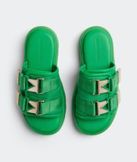 • Padded technical fabric flat sandals Material: 100% Lambskin • Lining: Sporty mesh fabric • Color: Grass • Hardware: Gold finish • Ultra lightweight rubber outsole • Platform: 4.5 cm | 1.8" Made in: italy