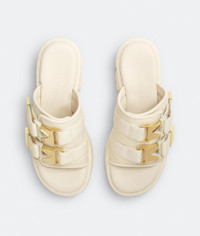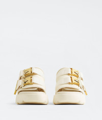 • Padded technical fabric sandals Material: 100% Lambskin • Lining: Sporty mesh fabric • Color: String • Hardware: Gold finish • Ultra lightweight rubber outsole • Heel: 8 cm | 3.1" Made in: italy