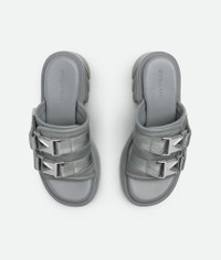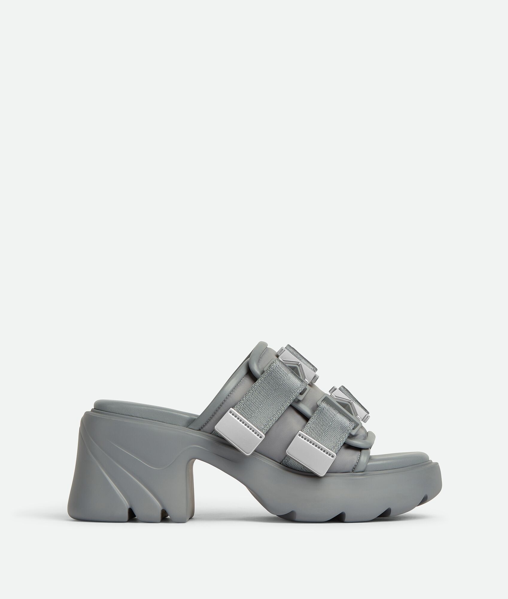 • Padded technical fabric sandals • Decorative buckle Material: 100% Lambskin • Lining: Sporty mesh fabric • Color: Vapor • Hardware: Silver finish • Ultra lightweight rubber outsole • Heel: 8 cm | 3.1" Made in: Italy