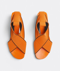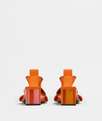 • Elastic band sandals • Iridescent heel Material: 100% Lambskin • Unlined • Color: Tangerine • Lugged rubber outsole • Heel: 5 cm | 2" Made in: italy