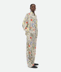 Pyjama set in viscose and silk with flower pattern. Product Details - Flower viscose and silk pyjama set - Special label on the interior - Packable bag - Button closure for shirt - Elasticated waistband for trousers - Relaxed fit - Material: 79% viscose, 21% mulberry silk - Color: Chalk/Hibiscus/Khaki - Made in: Italy - Product code: 817460V52Y09621 Size & Fit - Model is 181 cm | 5'11" and is wearing a Bottega Veneta size S