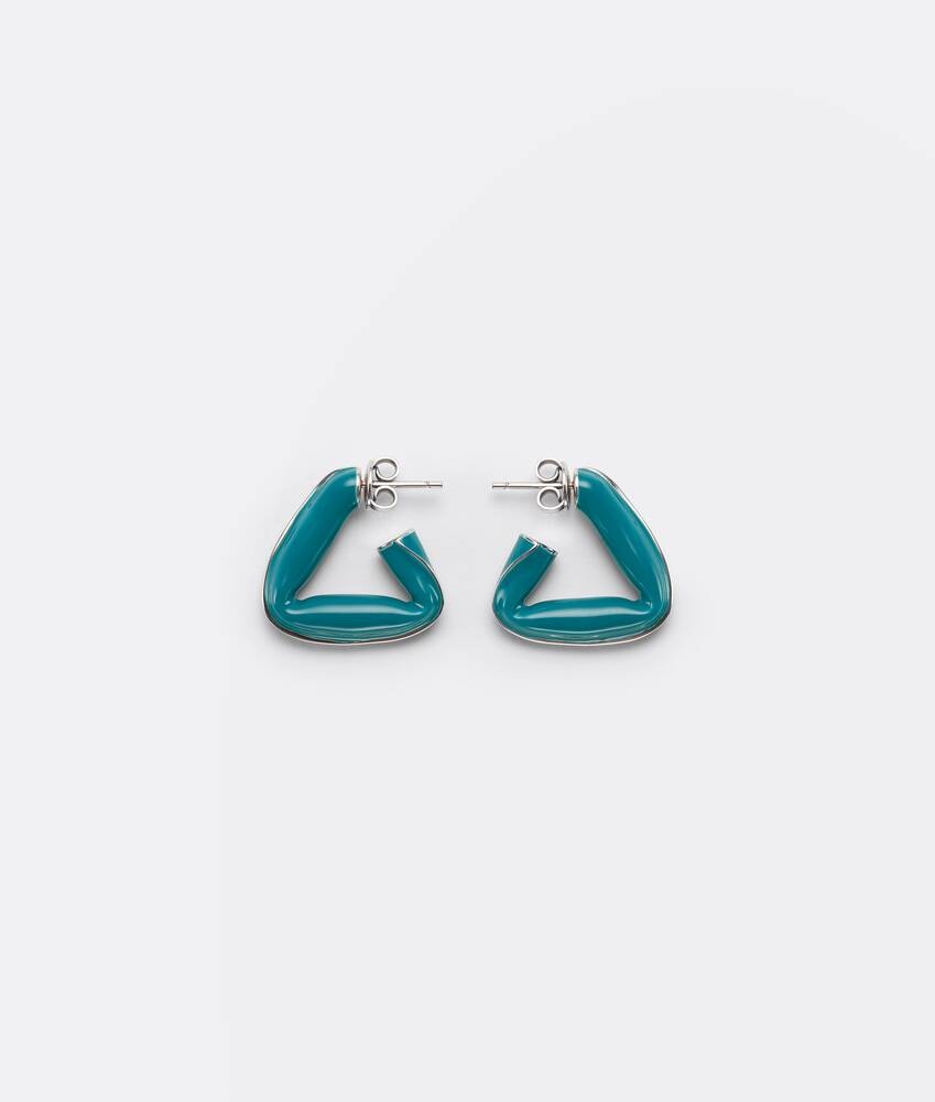 • Hand-enameled silver triangle hoop earrings Material: Sterling Silver, Enamel • Color: Blaster • Height 2.4 cm | 0.9 " • Width 2.4 cm | 0.9 " Made in: italy