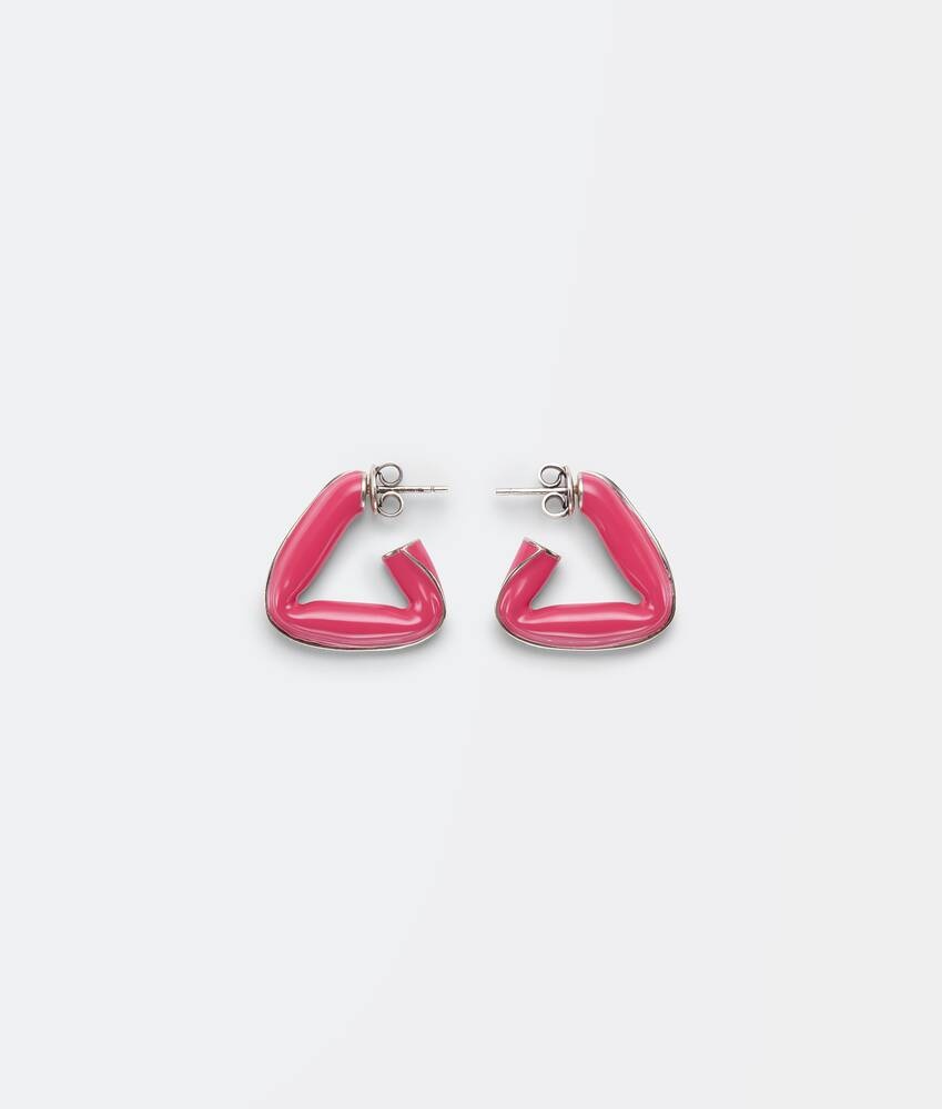 • Hand-enameled silver triangle hoop earrings Material: Sterling Silver, Enamel • Color: Lollipop • Height 2.4 cm | 0.9 " • Width 2.4 cm | 0.9 " Made in: italy