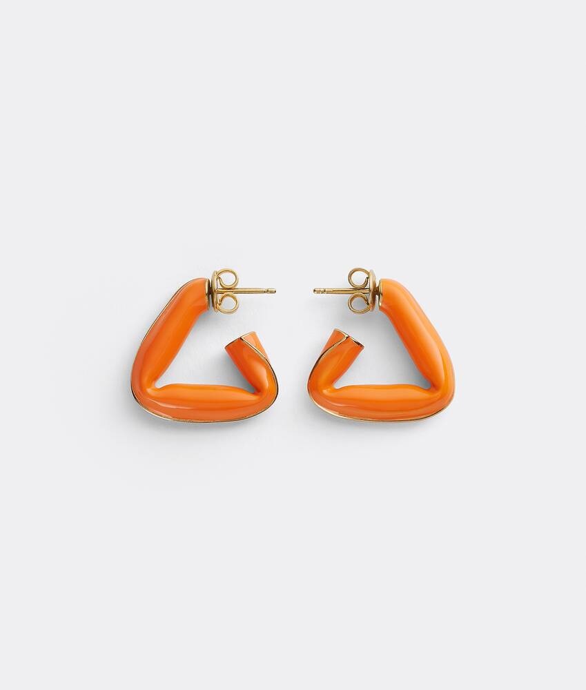 • Hand-enamelled 18-karat gold-plated silver triangle hoop earrings Material: Sterling Silver, Enamel • Color: Tangerine • Width: 2.3 cm | 0.9" • Height: 2.3 cm | 0.9" Made in: italy