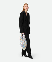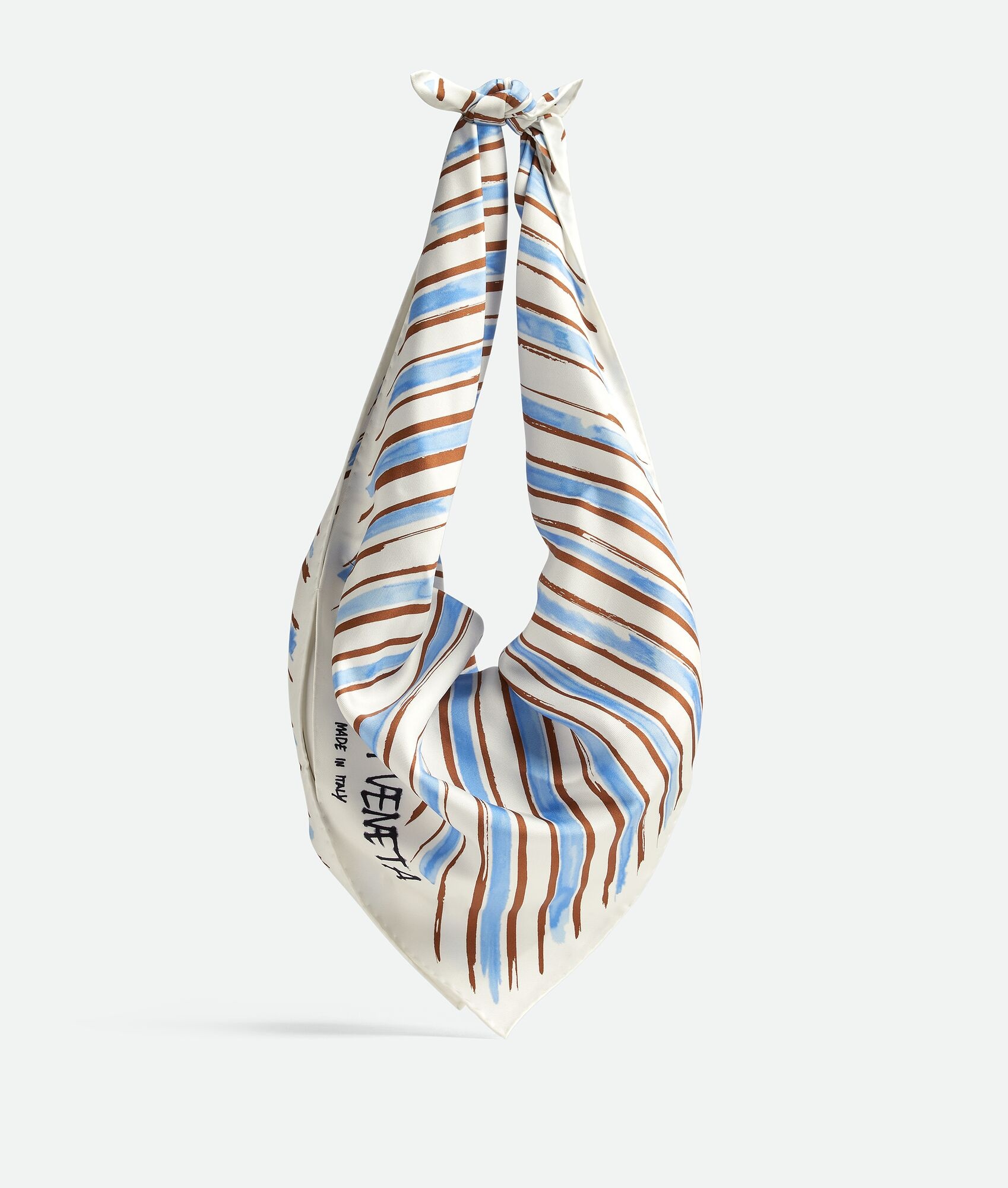 Shoulder bag in silk with painted stripe print and knotted handle. Product Details - Printed stripes silk shoulder bag with knotted handle - Single compartment - Zipper closure - Material: silk - Lining: Lambskin - Color: Admiral-Brown - Hardware: Brass finish - Height: 35 cm | 13.8” - Width: 31 cm | 12.2” - Depth: 13 cm | 5.1” - Handle drop: 31 cm | 12.2” - Made in: Italy - Product code: 816852V51O08928