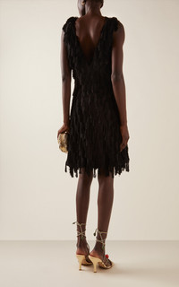 Designer Matthieu Blazy has leaned into Bottega Veneta's foundations, delivering wearable iterations of house signatures. Decored with fringy fil coupe, this short party dress is cut from smooth crepe and features knotting at the shoulders. PRODUCT DETAILS - Resort '25 - Concealed zip fastening along side - Composition: 75% Acetate, 25% Viscose - Dry clean only - Imported SIZE & FIT - Designed for a slim fit