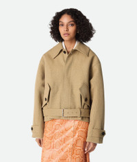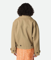 Oversized bomber jacket in frisse cotton. Product Details - Frisse cotton bomber jacket - Button closure - Fully lined - Oversized fit - Material: 55% Cotton, 31% viscose, 14% polyamide - Color: Taffy/Orange/Yuzu - Made in: Italy - Product code: 823212V5C802601 Size & Fit - Model is 180 cm | 5'10" and is wearing a Bottega Veneta size 38