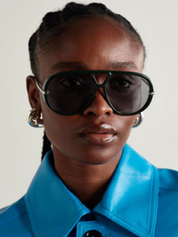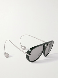 Bottega Veneta Eyewear's innovative sunglasses have curved silver-tone arms tipped with embellishments that are meant to resemble the label's dome-shaped earrings. They're made from dark-green recycled-acetate and have classic aviator-style frames. Details & Care - Dark-green recycled-acetate, silver-tone metal - Come with a case - 100% UV protection