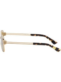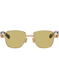 Square metal-frame sunglasses in gold tone. · Green lenses · 100% UVA/UVB protection, category 2 · Adjustable rubber nose pads · Logo engraved at temples · Tortoiseshell acetate temple tips · Includes case · Size: 51.18 150 Supplier color: Gold Metal, acetate. Made in Italy 252798F005004