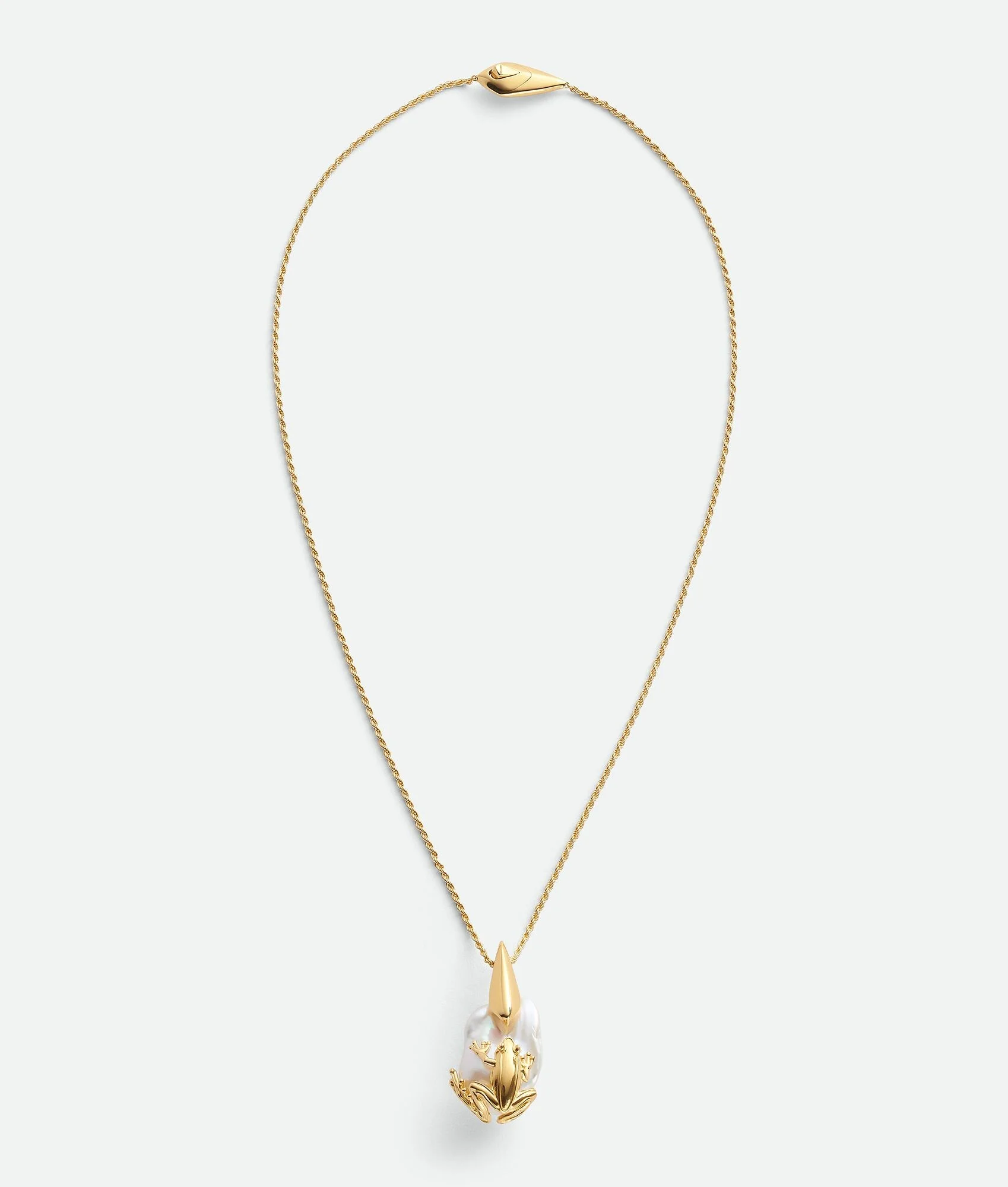 Necklace in 18k gold-finished sterling silver with baroque pearl pendant and frog Product Details - 18k gold-finish sterling silver pendant necklace with freshwater pearl - Push button closure - Length: 46 cm | 18.1” - Material: Sterling silver, pearl - Color: White - Made in: Italy - Product code: 827256V721A9000