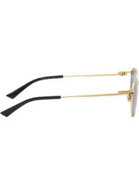 Hexagonal metal-frame sunglasses in gold tone. · Gray lenses · 100% UVA/UVB protection, category 3 · Adjustable rubber nose pads · Logo engraved at temples · Black acetate temple tips · Includes case · Size: 52.19 145 Supplier color: Gold Metal, acetate. Made in Italy 252798F005022