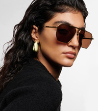Bring a refined sense of structure into your warm-weather edit with these contemporary aviator sunglasses from Bottega Veneta. Crafted in Italy with golden metal frames and brown lenses, they have an angular shape that's sure to amp-up even your most casual looks. Product Details - Frame color: gold - Frame material: metal - Lens color: brown - comes with cleaning cloth - come with signature intrecciato leather case - Lens filter category 3 - Made in Italy - Item number: P00463572 Size & Fit - Lens width: 60mm-2.35" - Bridge size: 13mm-0.5" - Earpiece length: 145mm-5.7"