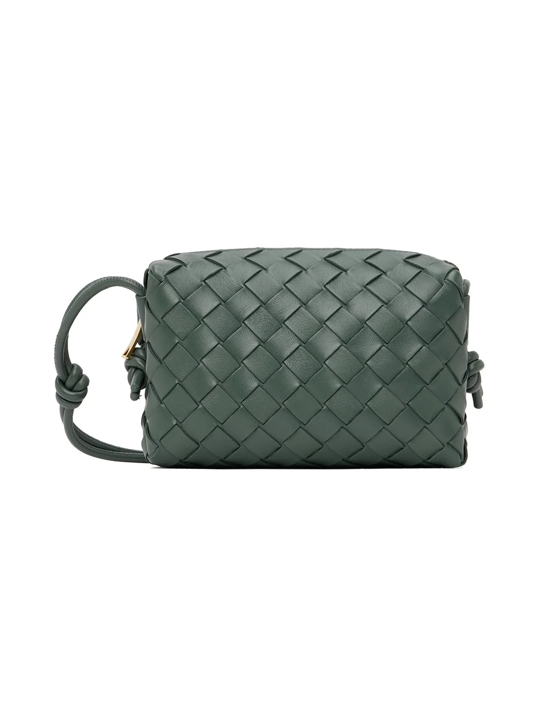 Intrecciato-woven nappa lambskin shoulder bag in gray. · Knotted detailing at adjustable shoulder strap · Zip closure · Bonded calfskin lining · H4.5 x W7 x D2.5 in Supplier color: Slate/Gold Lambskin. Made in Italy 232798F048058