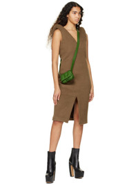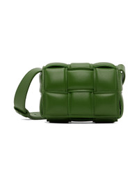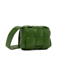 Padded intreccio-woven grained lambskin messenger bag in green. · Logo hardware at adjustable shoulder strap · Foldover flap · Tab-slot closure · Card slot at interior · Gold-tone hardware · H3.5 x W5 x D2 in Supplier color: Avocado/Gold Lambskin. Made in Italy 231798F048018