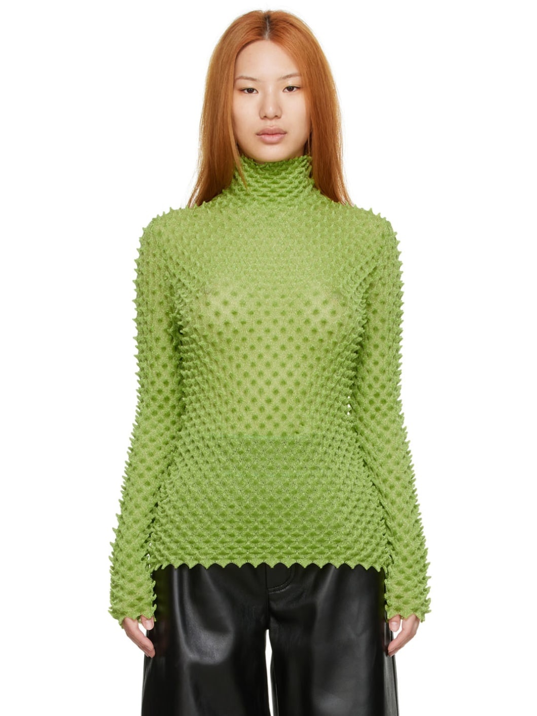 Textured knit polyester-blend sweater. · Turtleneck · Unlined Supplier color: Kiwi 54% polyester, 29% metallised fibre, 17% polyamide.