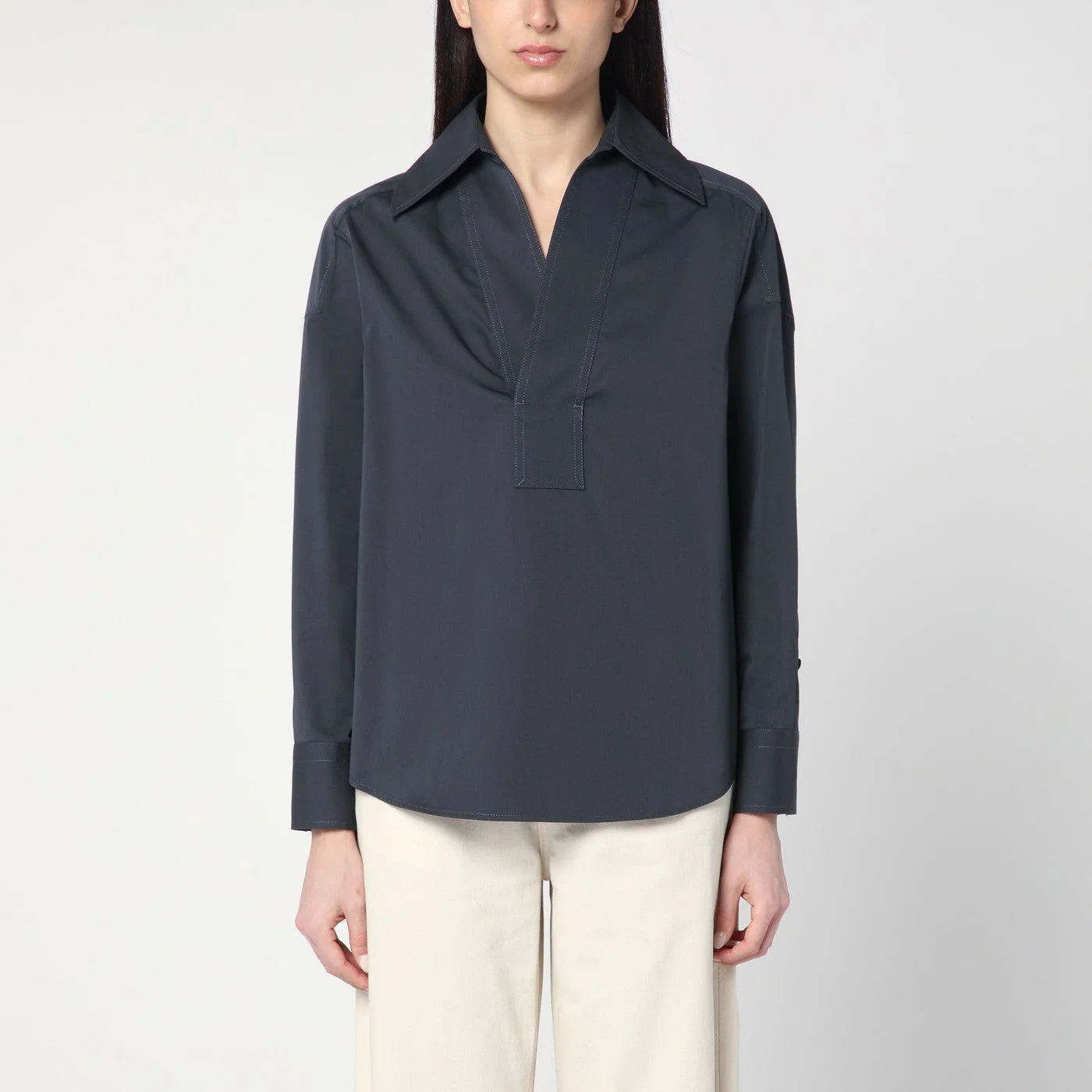 Long sleeves shirt by Bottega Veneta in lightweight technical cotton and silk grey feauturing contrasting stitching open collar V-neck button cuffs and relaxed fit.