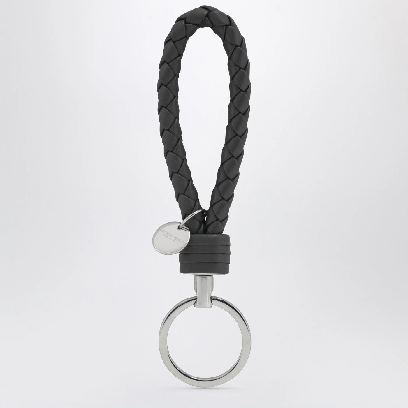 Grey Intrecciato leather key ring