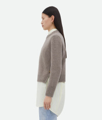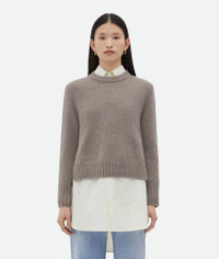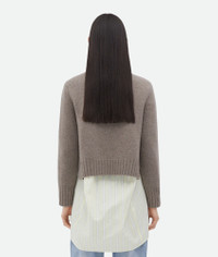 Felted wool sweater. Product details • Felted wool sweater • Metal knot button closure • Regular fit Material: 100% Wool • Color: Riverbed Made in: Italy Size & fit • Model is 180 cm | 5'11" and is wearing a Bottega Veneta size S