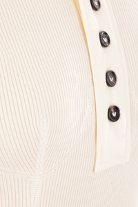 Bottega Veneta's short-sleeved pullover crafted in beige stretch cotton knit with stitches at chest. Featuring crew neck, button closure at chest and ribbed edges. DETAILS - color Sea Salt - 93% cotton, 7% elasthane - made in Italy SIZE & FIT - Size INTERNATIONALSTANDARD; the size shown for this item is the size indicated by the designer on the label - Regular Fit - True to size - Model wears size S. Model measurements: shoulder 38 cm, chest 81 cm, waist 62 cm, hips 90 cm, height 1.77 m product code: 779195V3Z609028