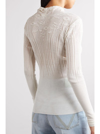 Bottega Veneta's sweater is made from cotton-blend that's pointelle-knitted with pretty flowers and sheer stripes, reflecting the unexpected textures seen at the Spring '24 runway show. It has a high neckline and close fit, so it's perfect for tucking into jeans or tailored pants. Details & Care - White cotton-blend - Slips on - Fabric1: 82% cotton, 18% polyamide; fabric2: 76% cotton, 22% polyamide, 2% elastane