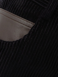 Fabrics and textures have been a huge focus for Matthieu Blazy's Bottega Veneta. From the house's Pre-Fall '24 collection, these pants are cut from velvety cotton-corduroy in a straight-leg, high-rise silhouette. The coin pocket is made from contrasting leather - a subtle detail that makes such an impact. Size & Fit - Fits true to size, however those who are between sizes should take the smaller size - High-rise, intended for a straight-leg fit - Mid-weight, non-stretchy fabric - Model is 177cm/ 5'10" and is wearing an IT 38 Details & Care - Black cotton-corduroy, dark-brown leather - Button and concealed zip fastening at front - 100% cotton Large to size. See Size & Fit notes.
