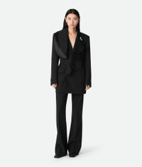 Trousers with flared leg in lightweight wool. Product Details - Lightweight wool trousers - Flared leg - Zip, hook and button closure - Material: 100% Wool - Color: Black - Made in: Italy - Product code: 820099V0B301000 Size & Fit - Model is 178 cm | 5'10" and is wearing a Bottega Veneta size 38