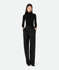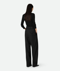Trousers with straight leg in fine viscose and silk twill. Product Details - Fine viscose and silk twill trousers - Straight leg - Zip, hook and button closure - Material: 61% Viscose, 39% Mulberry silk - Color: Black - Made in: Italy - Product code: 820107V5D901000 Size & Fit - Model is 178 cm | 5'10" and is wearing a Bottega Veneta size 38