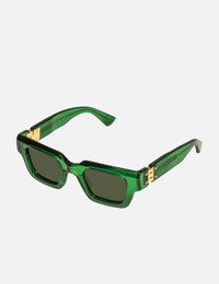 - Bottega Veneta - Hinge Acetate Square Sunglasses - Square green acetate frame - Bio-nylon tonal lenses - Metal hinge details at the sides - Integrated nose pad - Branding engraved on the temples - Transparent construction - Color: Green - Material: Acetate - See more Eyewear and Accessories SIZING Approximate dimensions: - Frame Height: 4.8cm - Frame Width: 14.5cm - 49 ☐ 23 - 140