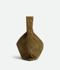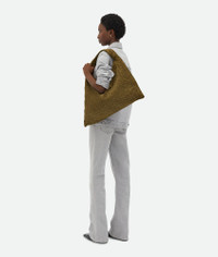 Shoulder bag with Intrecciato craftsmanship in smooth suede. Product Details - Large Intrecciato suede shoulder bag - One internal zippered pocket - Flap closure secured with magnet - Material: calfskin - Lining: Calfskin - Color: Olive Oil - Hardware: Brass finish - Height: 24 cm | 9.4" - Width: 54 cm | 21.3" - Depth: 13 cm | 5.1" - Handle drop: 27 cm | 10.6” - Made in: Italy - Product code: 763970V1QE33356