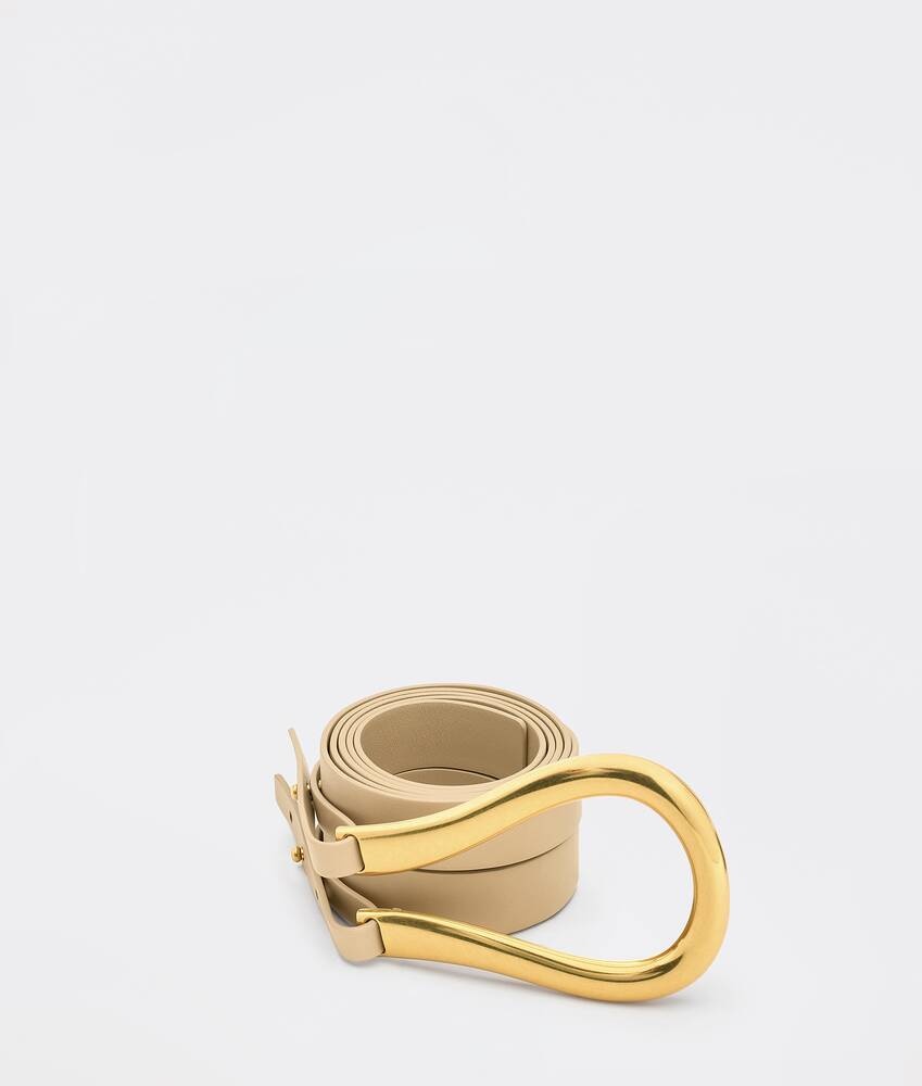 • Leather double strap belt • Knot and pin closure Material: 100% Calfskin Lining: Calfskin Color: Porridge Hardware: Gold finish Height: 5 cm | 2 " Depth: 0.5 cm | 0.2 " Made in: italy