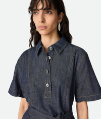 Belted mini dress in lightweight indigo washed denim. Product Details - Lightweight indigo washed denim mini dress - Button and belt closure - Regular fit - Material: 100% Cotton - Color: Indigo - Made in: Italy - Product code: 837838V5SN04245 Size & Fit - Model is 178 cm | 5'10" and is wearing a Bottega Veneta size 38