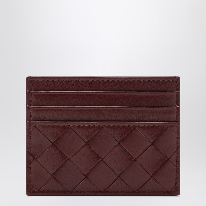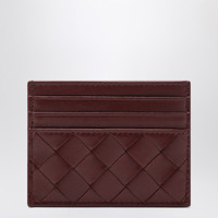 Bottega Veneta card holder in Barolo leather with Intrecciato pattern, featuring six card slots and a central slot.