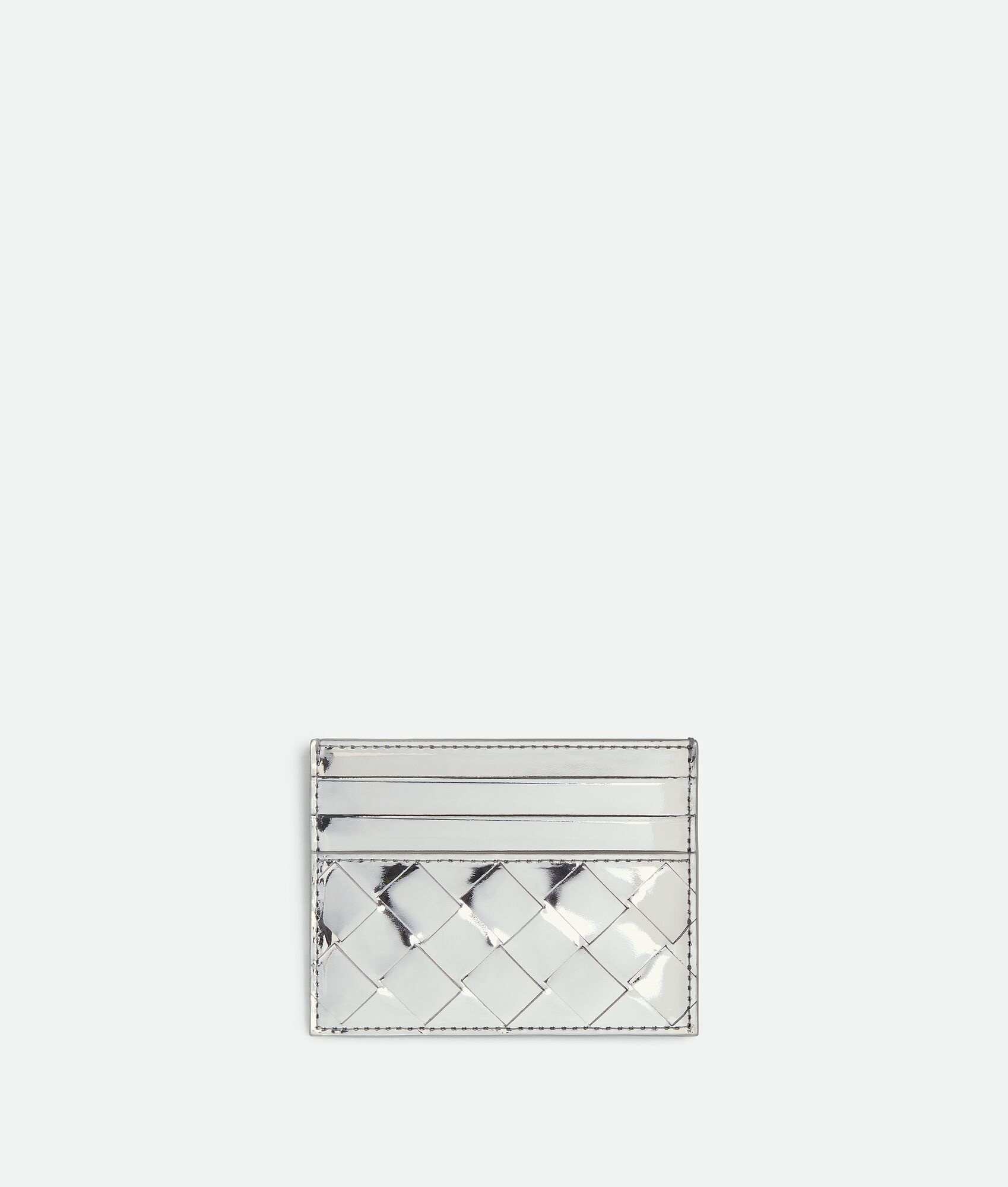 Intrecciato laminated nappa card case. Product Details - Six card slots, one central pocket - Material: Lambskin - Lining: Lambskin - Color: Silver - Height: 8 cm | 3.1" - Width: 10.5 cm | 4.1" - Depth: 0.5 cm | 0.2" - Made in: Italy - Product code: 742325V3QM58101