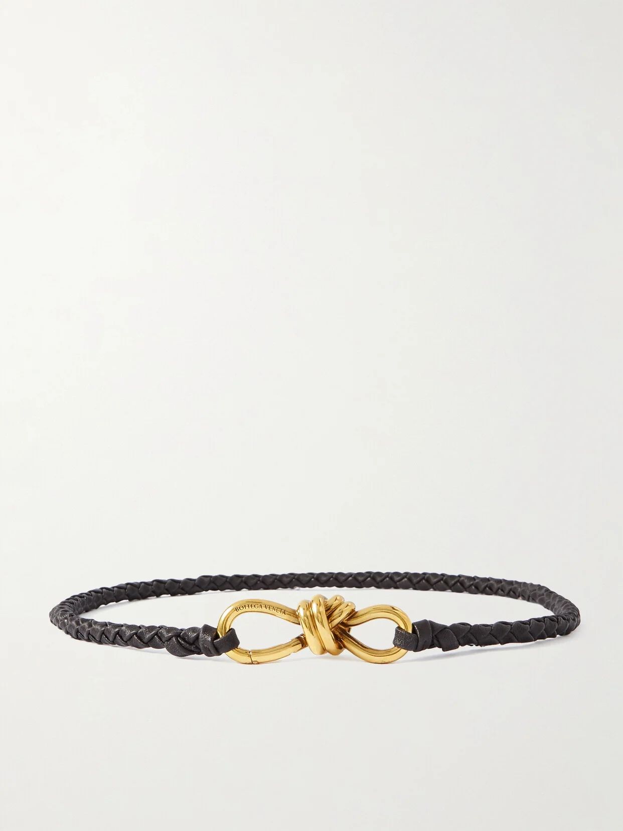 Bottega Veneta's belt is woven using the label's instantly recognizable intrecciato technique. Made from strips of soft leather, it's tipped with a gold-tone knot buckle.