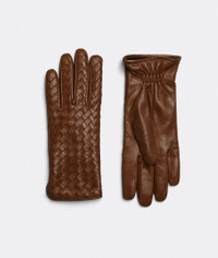 Intrecciato leather gloves. Product Details - Intrecciato leather gloves - Cashmere lining - Material: lambskin - Color: Cognac - Made in: Italy - Product code: 690339VZQO12587