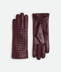 Gloves in soft Intrecciato nappa leather with cashmere lining. Product Details - Intrecciato soft nappa leather gloves - Lined in cashmere - Color: Jam - Made in: Italy - Product code: 804439V01716206 Material - Material: 100% Lambskin