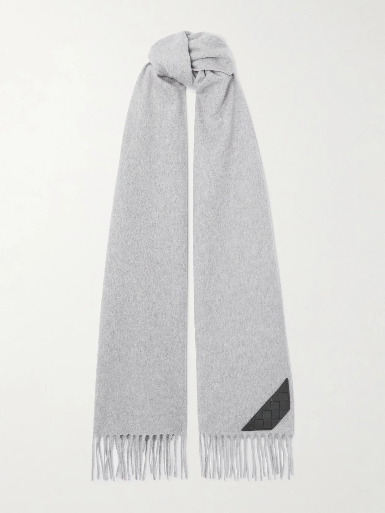 Intrecciato Leather-trimmed Fringed Cashmere Scarf