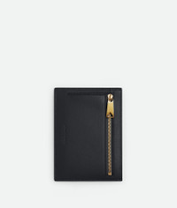 Intrecciato nappa passport case. Product Details - Intrecciato nappa card case with central pocket for passport - Eight card slots, one central pocket, one back zippered coin purse - Material: Lambskin - Lining: Calfskin - Color: Black - Hardware: Gold finish - Height: 14.5 cm | 5.7" - Width: 10.5 cm | 4.1" - Depth: 0.5 cm | 0.2" - Made in: Italy - Product code: 763935VCPP38425