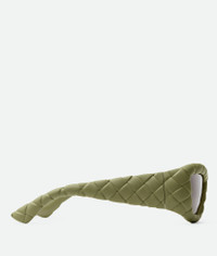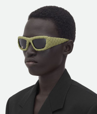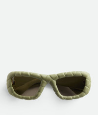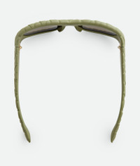 Rectangular sunglasses in injected acetate. Made in Japan. Product Details - Signature Intrecciato pattern on front and temples - Bio nylon lenses - BV1303S 002 - Material: Acetate - Color: Green/Brown - Made in: Japan - Product code: 779523VBL803309