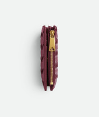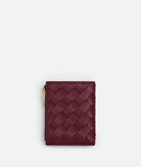 Intrecciato nappa leather wallet. Product Details - Six card slots, one bill compartment, two additional pockets, one zipped coin purse - Press stud closure - Material: lambskin, calfskin - Lining: Calfskin - Colour: Barolo - Hardware: Gold finish - Height: 11.5 cm - Width: 9 cm - Depth: 1 cm - Made in: Italy - Product code: 742330VCPP32247