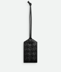 Intrecciato calfskin leather tag holder with strap. Product Details - Leather strap to be easily attached to any handle - Window to display paper tag - Paper tag inside for name and address - Material: lambskin, calfskin - Color: Black - Height: 11.5 cm | 4.5" - Width: 6.5 cm | 2.6" - Depth: 0.5 cm | 0.2" - Strap drop: 17 cm | 6.7" - Made in: Italy - Product code: 787875VCP3H1000