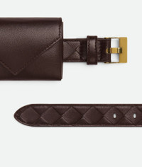 Intrecciato lambskin leather belt with AirPods pouch. Product Details - Prong closure - Intrecciato strap - Additional pouch in smooth leather for AirPods - Material: Calfskin - Lining: Calfskin - Color: Fondant - Hardware: Muse Brass finish - Height: 2.5 cm | 1" - Depth: 0.5 cm | 0.2" - Made in: Italy - Product code: 786119V2ZL42190